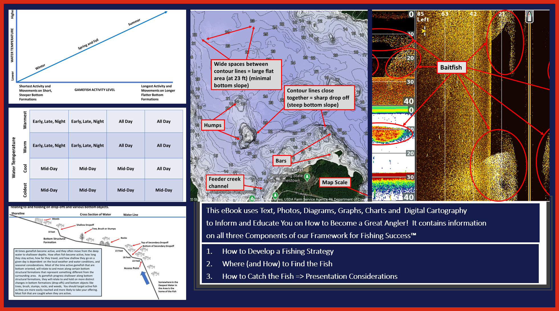 This eBook will teach you how to develop daily and seasonal fishing strategies through an understanding of: